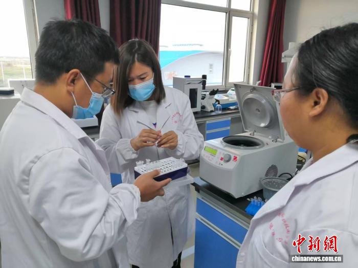 图为林团荣(中)和团队成员做实验。乌兰察布市农林科学研究院供图