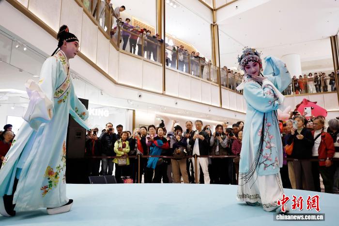 4月12日,民众在新天地东台里观看越剧表演。中新社记者 殷立勤 摄