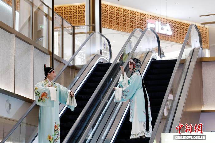 4月12日,上海昆剧团一级演员、第28届中国戏剧梅花奖得主沈昳丽(右)在新天地东台里演出。中新社记者 殷立勤 摄