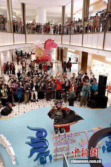 4月12日,民众在新天地东台里观看川剧表演。中新社记者 殷立勤 摄