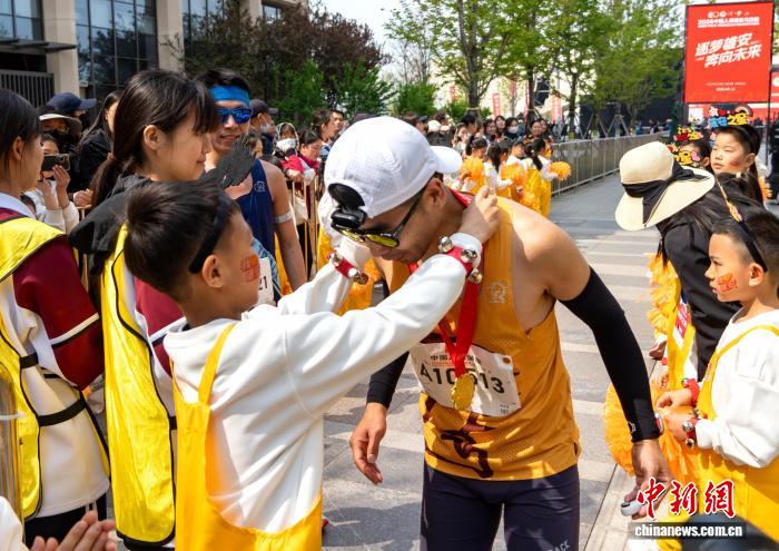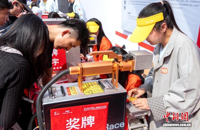 图为比赛现场,选手正在领取奖牌。中新社记者 韩冰 摄