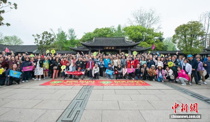 中新网扬州4月14日电 (徐珊珊 崔佳明)四月的扬州,一城繁花、满城翠色,引得八方宾客踏春而来,共赴一场诗与远方的邀约。13日,400余名新加坡游客春游扬州,开启“美食嘉年华”之旅。
