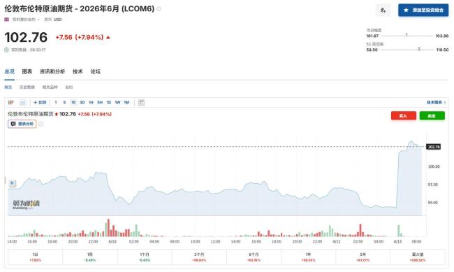 美国与伊朗周末和谈未取得成果,导致双方紧张局势升级。周一亚洲开盘时,国际油价大幅上涨,布伦特原油期货和WTI原油期货均上涨约8%。