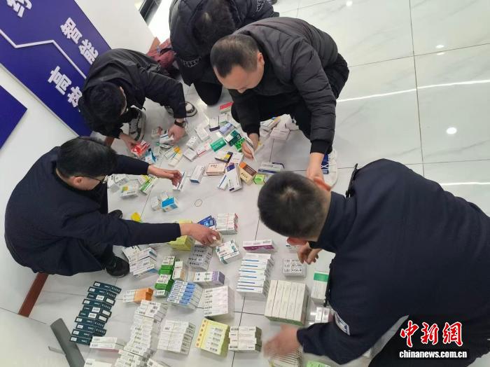 图为警方正在清点查获的药品。上海市公安局崇明分局 供图