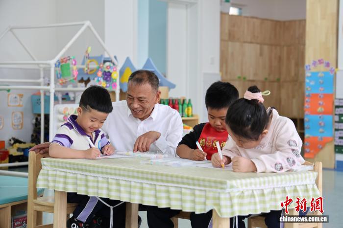 图为赵海涛与孩子们互动。曾令刚 摄