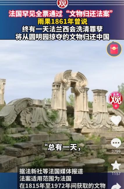法国归还文物背后有何玄机 东方力量推动全球规则变化。法国国民议会以170票赞成、0票反对,全票通过了一项简化归还殖民时期掠夺文物程序的法案。尽管当天只有大约三分之一的议员到场,各党派在具体细节上也有争议,但在大方向上达成了一致。